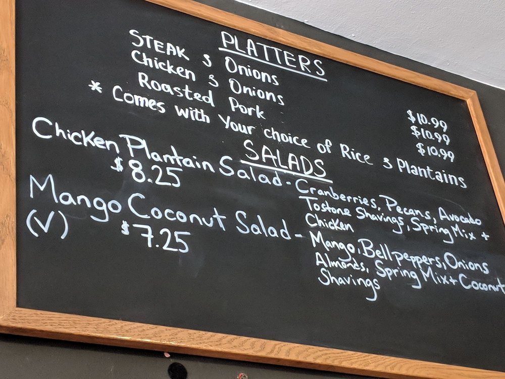 Chopped green leaf lettuce, tomatoes, sweet plantains, avocado, onion and crispy plantain. Available with chicken or steak.