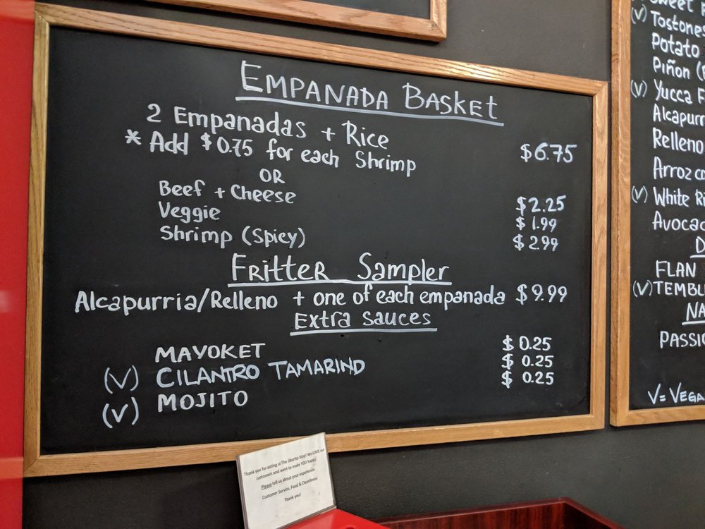 One of each:beef empanada, veggie empanada, shrimp empanada, chicken empanada, relleno and alcapurria. Served with dipping sauces.